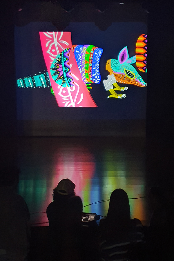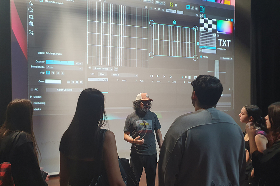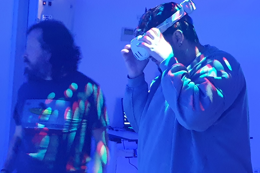 Conocimos las instalaciones y los pudimos probar algunos de los recursos tecnológicos que ofrecen como salas de ensayo musical o grabación de podcasts, sala de danza para entrenamientos y creación, sala de actuaciones para ensayos y muestra de espectáculos, laboratorios de ilustración digital, videomapping, iluminación artística, creación para entornos de realidad virtual y mixta, etc. todo ello de la mano del artista y docente Yaguart.
