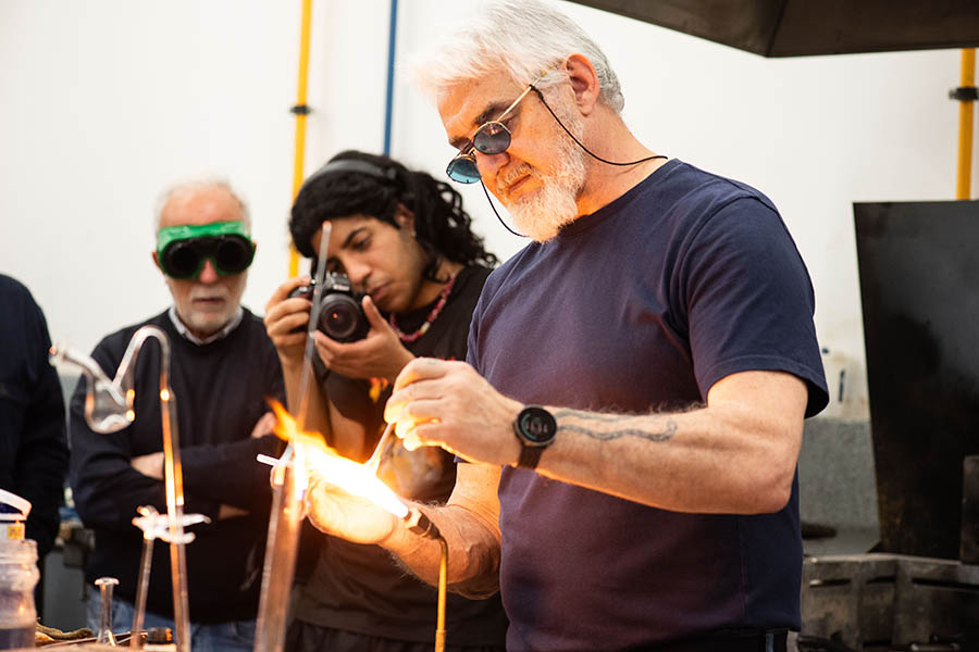 El pasado lunes 13 tuvimos la suerte de tener en el taller una demostración en vivo de vidrio modelado y soplado, y queremos dar las gracias a Arturo Laguarta por regalarnos una mañana tan especial.