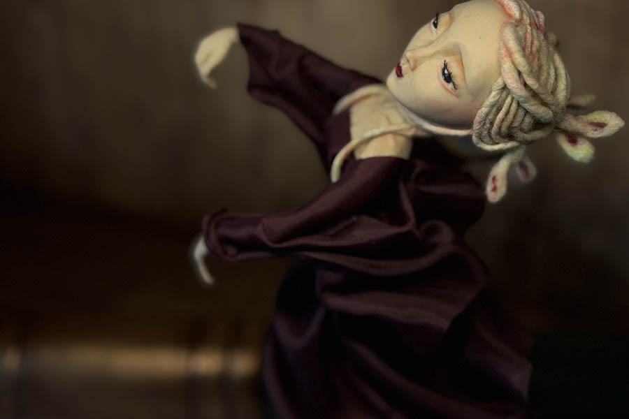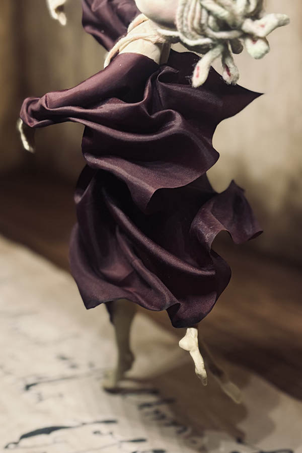 Se han empleado distintos materiales y técnicas para generar una recreación de un espacio envolvente y situarnos en una época pasada. El envejecimiento de los distintos elementos, las dimensiones de los mismos y el movimiento expresado con la figura principal tienen la intención de generar en el espectador una curiosidad que conecte con la fantasía de los cuentos de hadas.