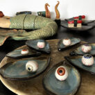 Lo que en principio iba a ser una pieza escultórica única, durante la evolución del proyecto, se ha convertido en el plato principal de un banquete un tanto macabro ejecutado en pasta refractaria.