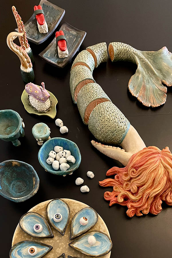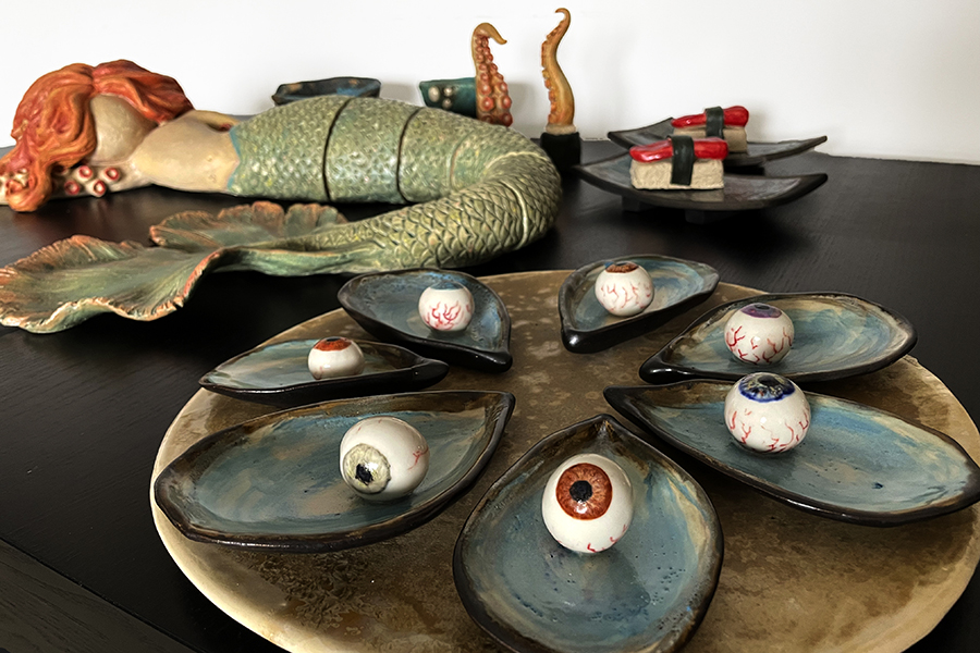 Lo que en principio iba a ser una pieza escultórica única, durante la evolución del proyecto, se ha convertido en el plato principal de un banquete un tanto macabro ejecutado en pasta refractaria.