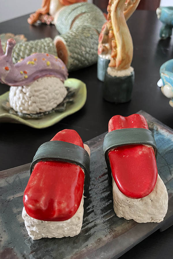 Delicatessen es un conjunto de esculturas que fusiona la mitología, la naturaleza y el comportamiento del ser humano, generando una crítica a las estructuras sociales.